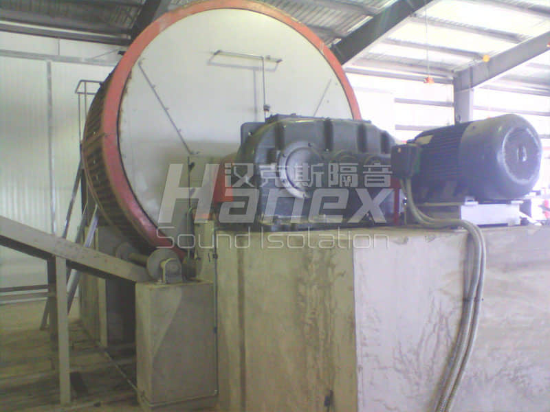 案例簡介:廠區車間內4臺破碎機運行時噪聲量達到120分貝,影響廠區環境和工人工作。漢克斯對每臺破碎機單獨設置隔聲罩后,距離設備一米處測得噪聲值為80分貝,低于國家衛生標準,符合降噪要求。隔聲罩內具有通風散熱照明功能,能夠保證內部設備的正常運行。